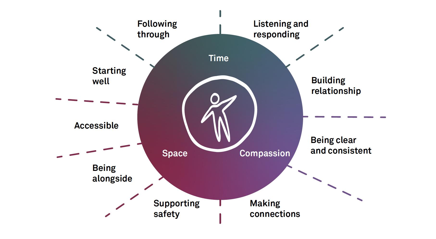 On reflecting on this work Fife have highlighted the principles of Time, Space, Compassion outlined below as being key: